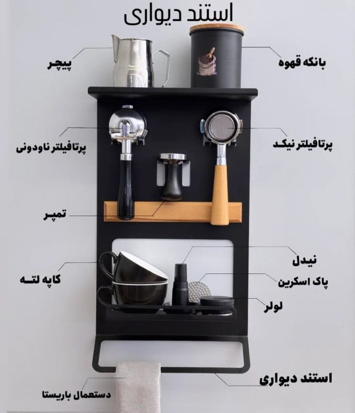 محلی برای قراردادن ابزار های قهوه ساز( پرتافیلتر ،تمپر٫لولر٫نیدل٫فانل و در کنار هم با نظم و زیبایی